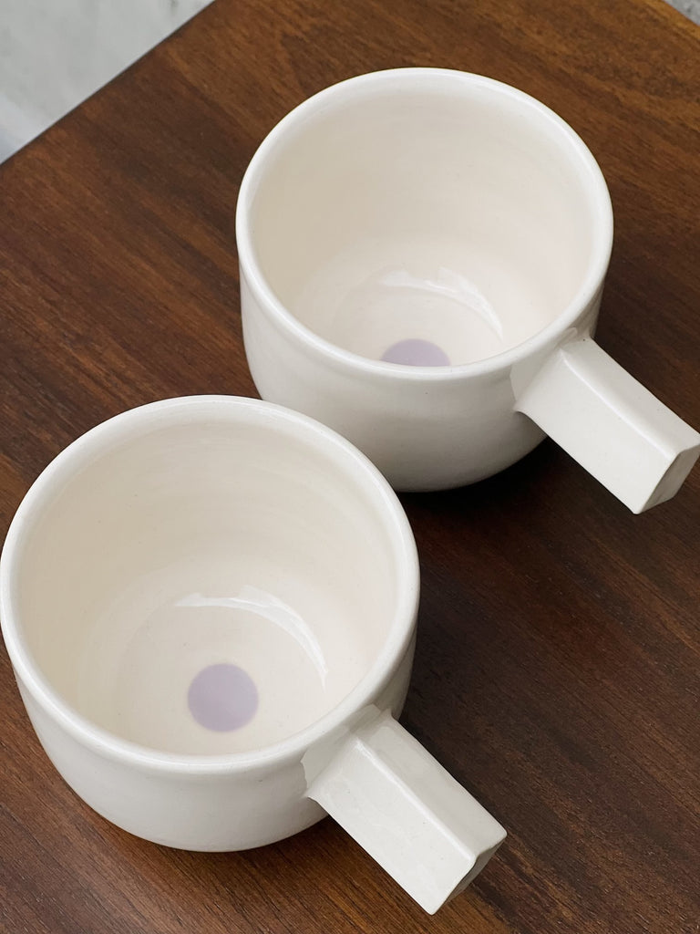 With a unique diamond handle, and pastel drop centre, these mugs are the perfect fit for you and your special valentine.